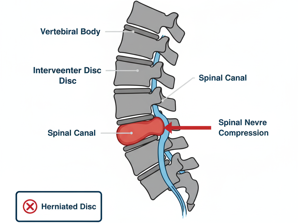 A disc herniation is a common and often painful condition that occurs when one of the rubbery discs between your vertebrae ruptures. These discs act as cushions for the bones of your spine, and each one has a tough outer layer and a soft, jelly-like center. When the outer layer tears, the inner material can push out, or herniate, putting pressure on nearby nerves or the spinal cord itself. This pressure is the cause of symptoms like radiating pain, numbness, tingling, and muscle weakness. While a disc herniation can occur anywhere in the spine, it is most common in the lumbar (lower back) and cervical (neck) regions.